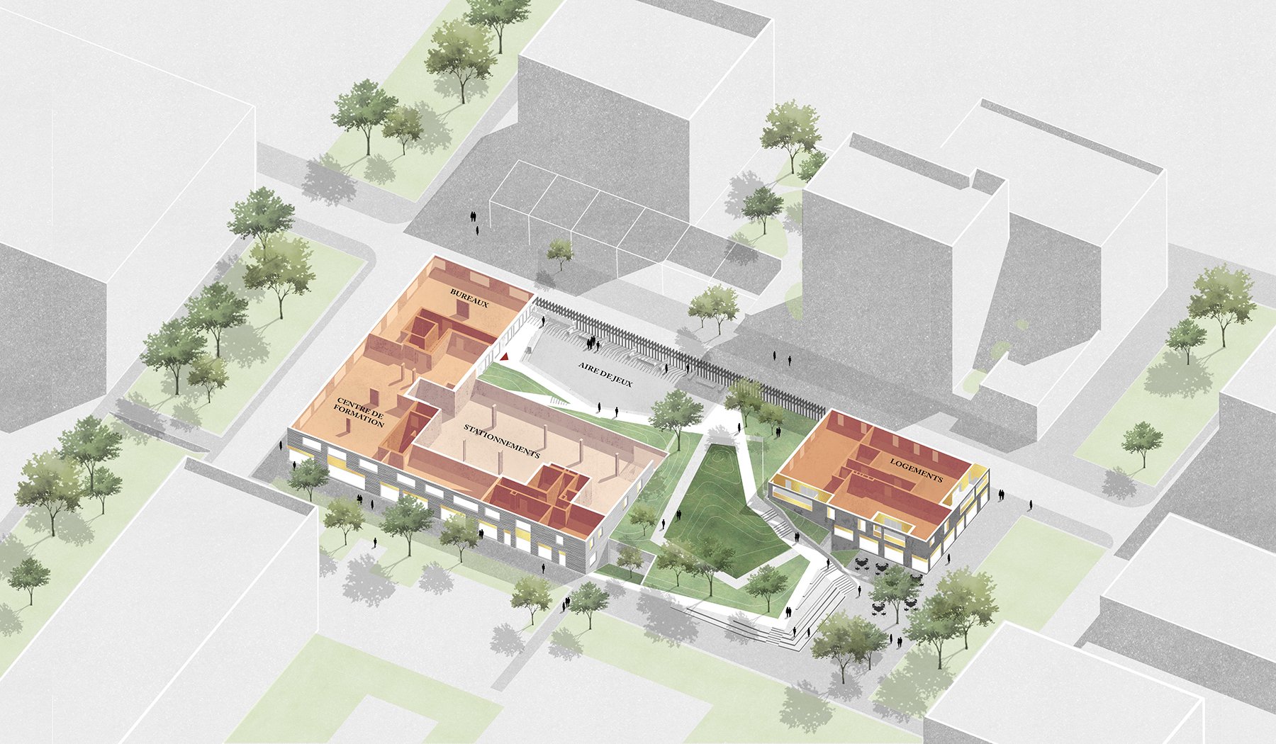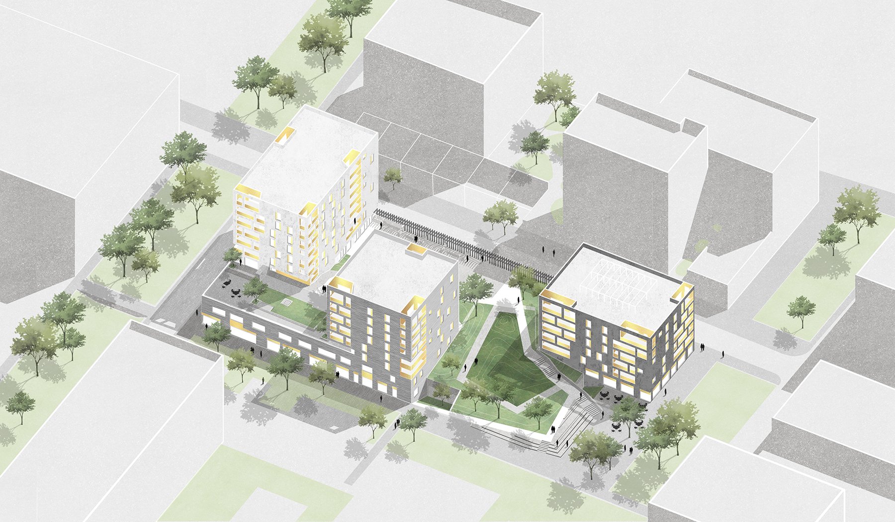 L’enjeu de ce projet est double. Urbain car il porte sur la future mixité du quartier, qui est fortement marqué par les bureaux, et programmatique pour affirmer le caractère “habité” des logements au cœur de ce pôle tertiaire.
