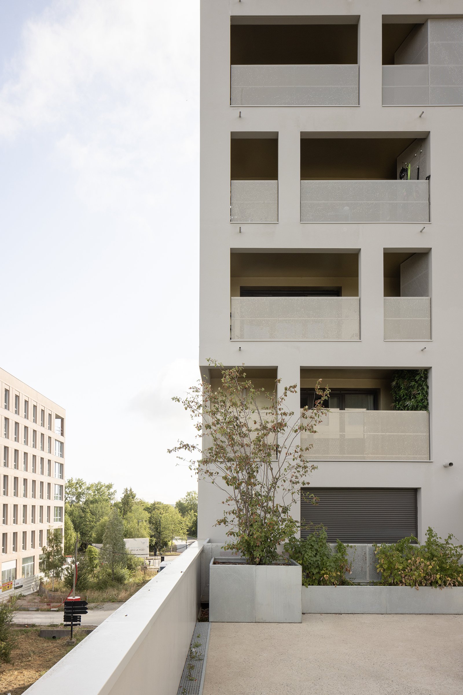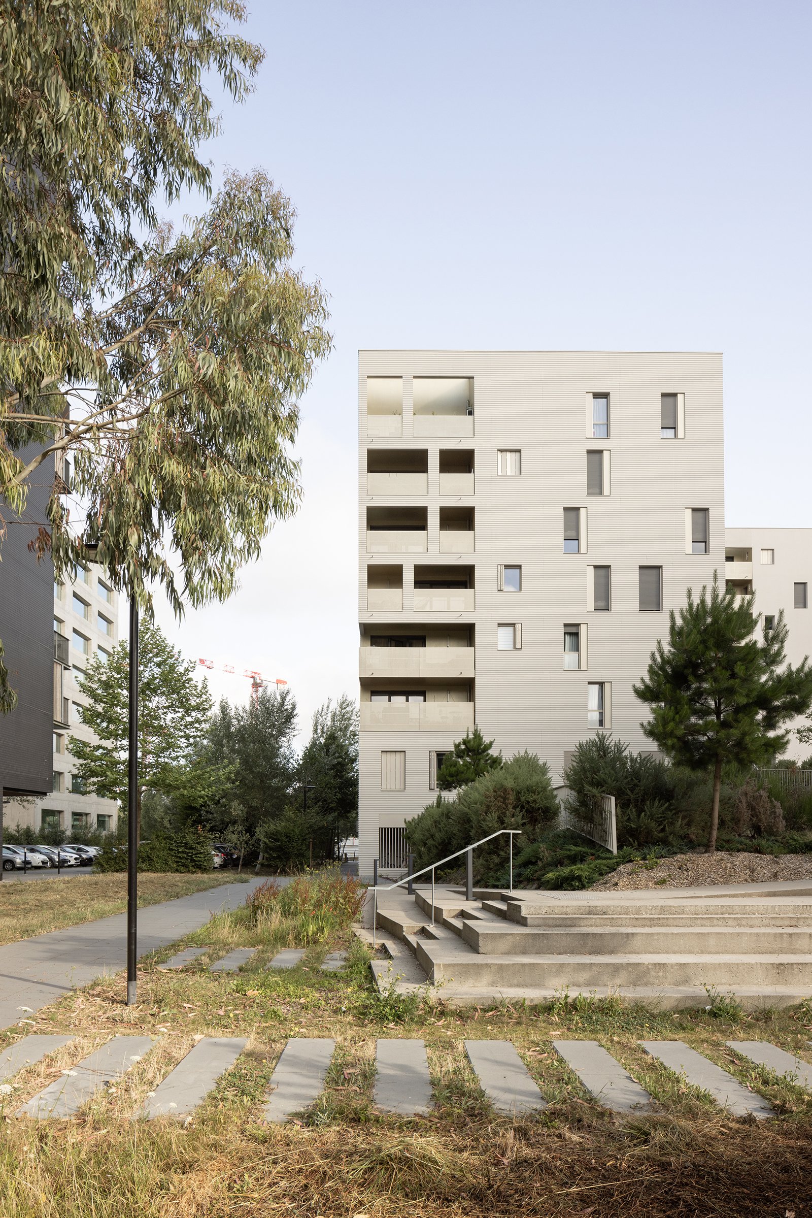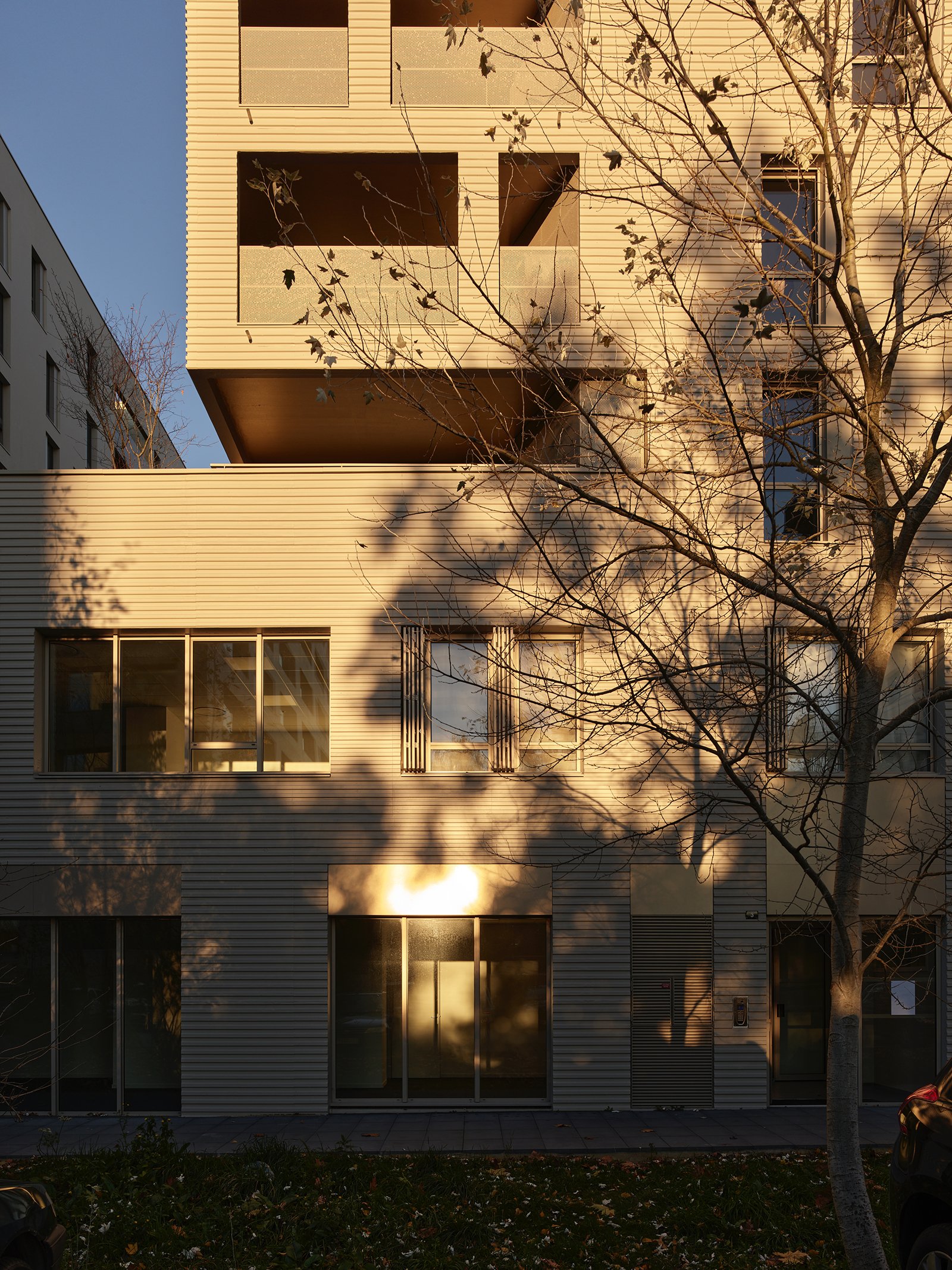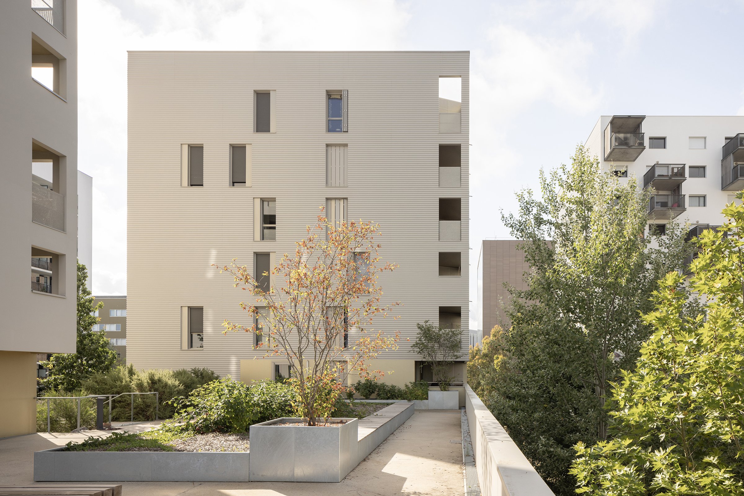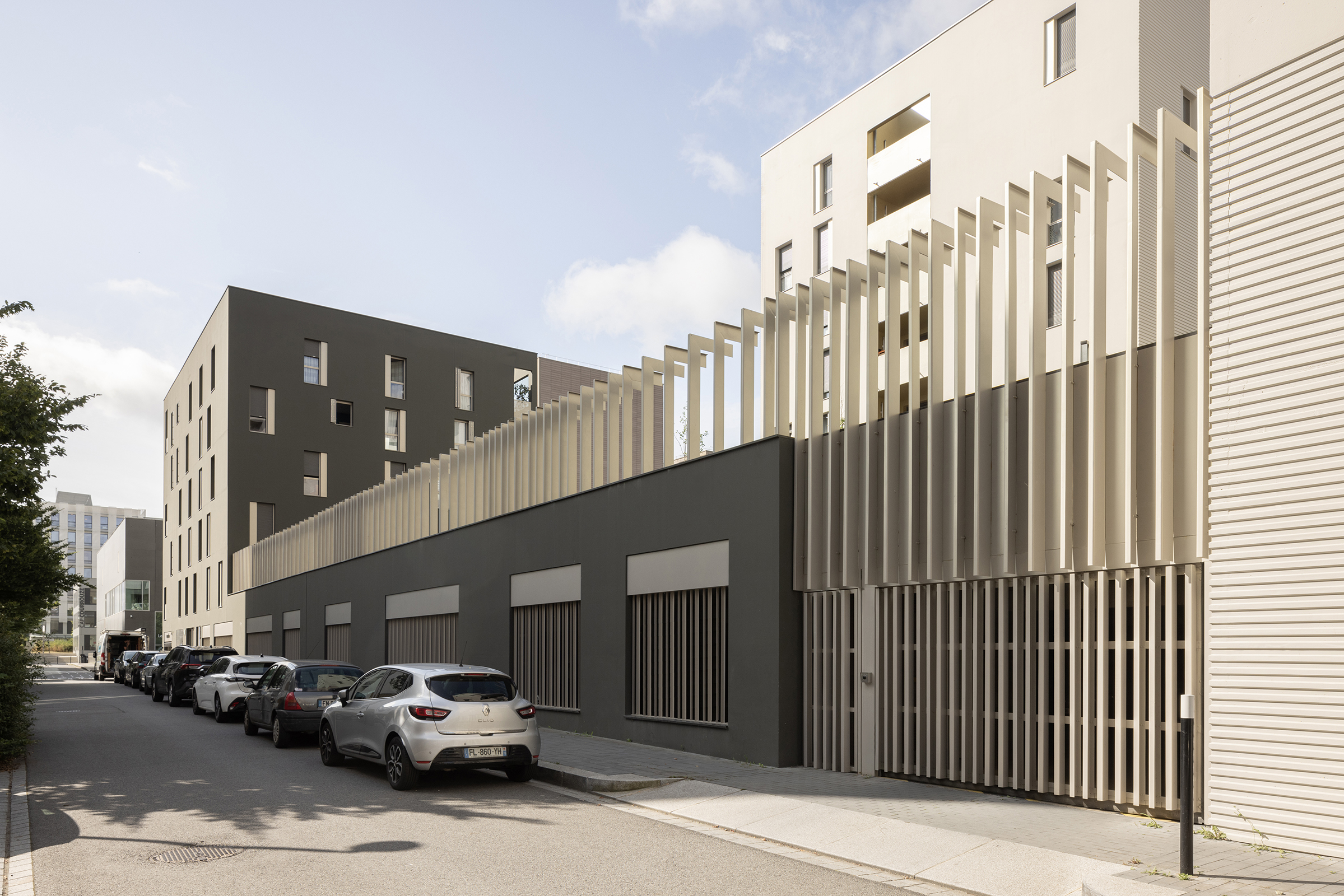 La proposition sur les émergences porte sur des volumes simples en cohérence avec le contexte de la ZAC. Le traitement des façades vise une image élégante et domestique afin de favoriser l’appropriation du quartier par les habitants.