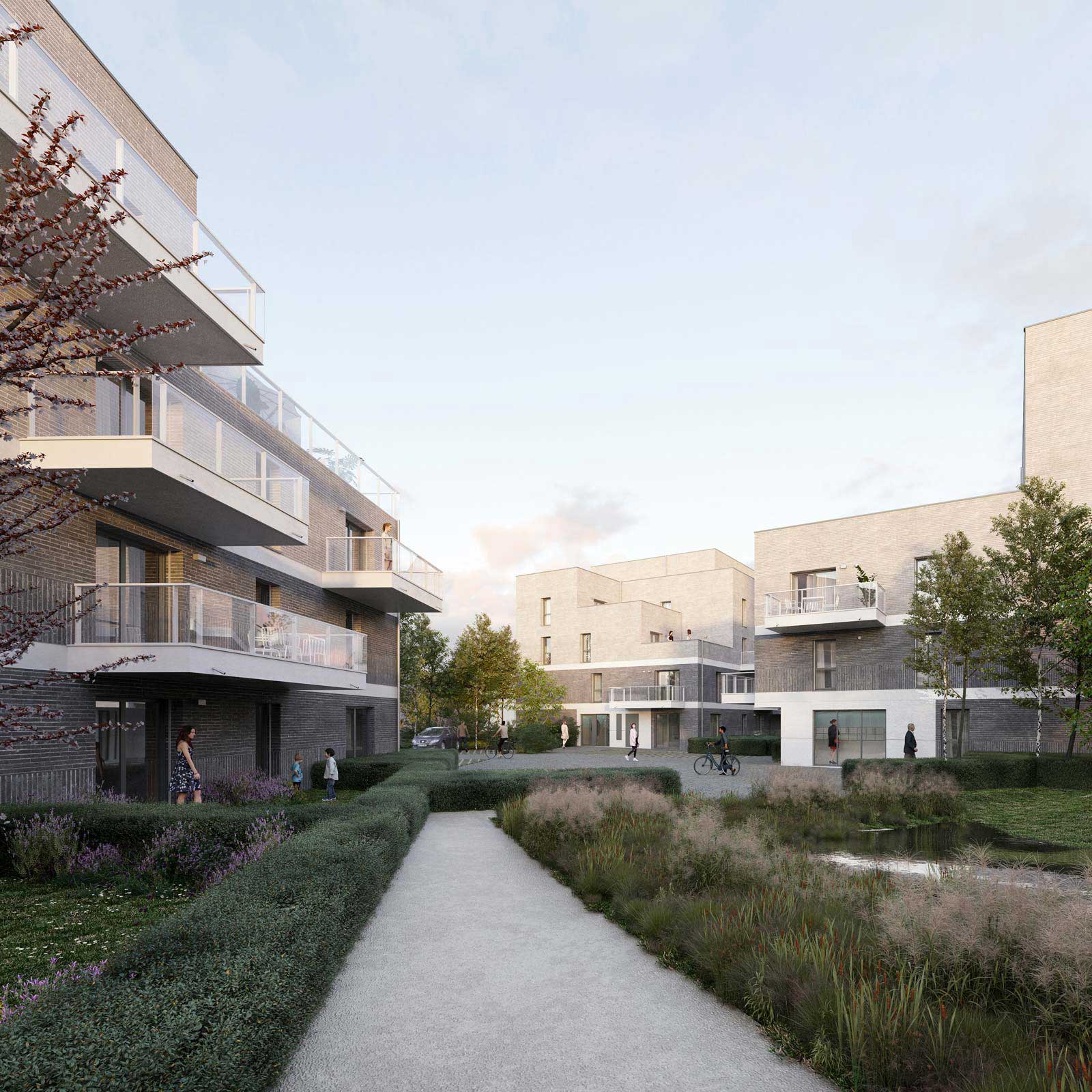Les bâtiments bénéficient d’une situation privilégiée. Le caractère paysager du site est l’une des grands points forts. Le projet entend tirer profit de cette identité et propose l’implantation de trois unités émergeant de la masse végétale du site pour jouer le rôle d’un Landmark, vecteur d’une urbanité singulière sur cette entrée de ville en respect du caractère bocager du site.